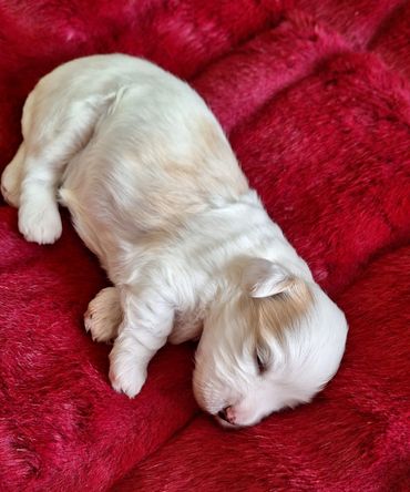 We have one puppy left from Sky's litter born May 20, 2024. Lola is a happy playful girl who is active and needs a home where she can be exercised as well as loved and cuddled. She will receive her full set of vaccinations on September 12. She is champagne and gold in colour.
